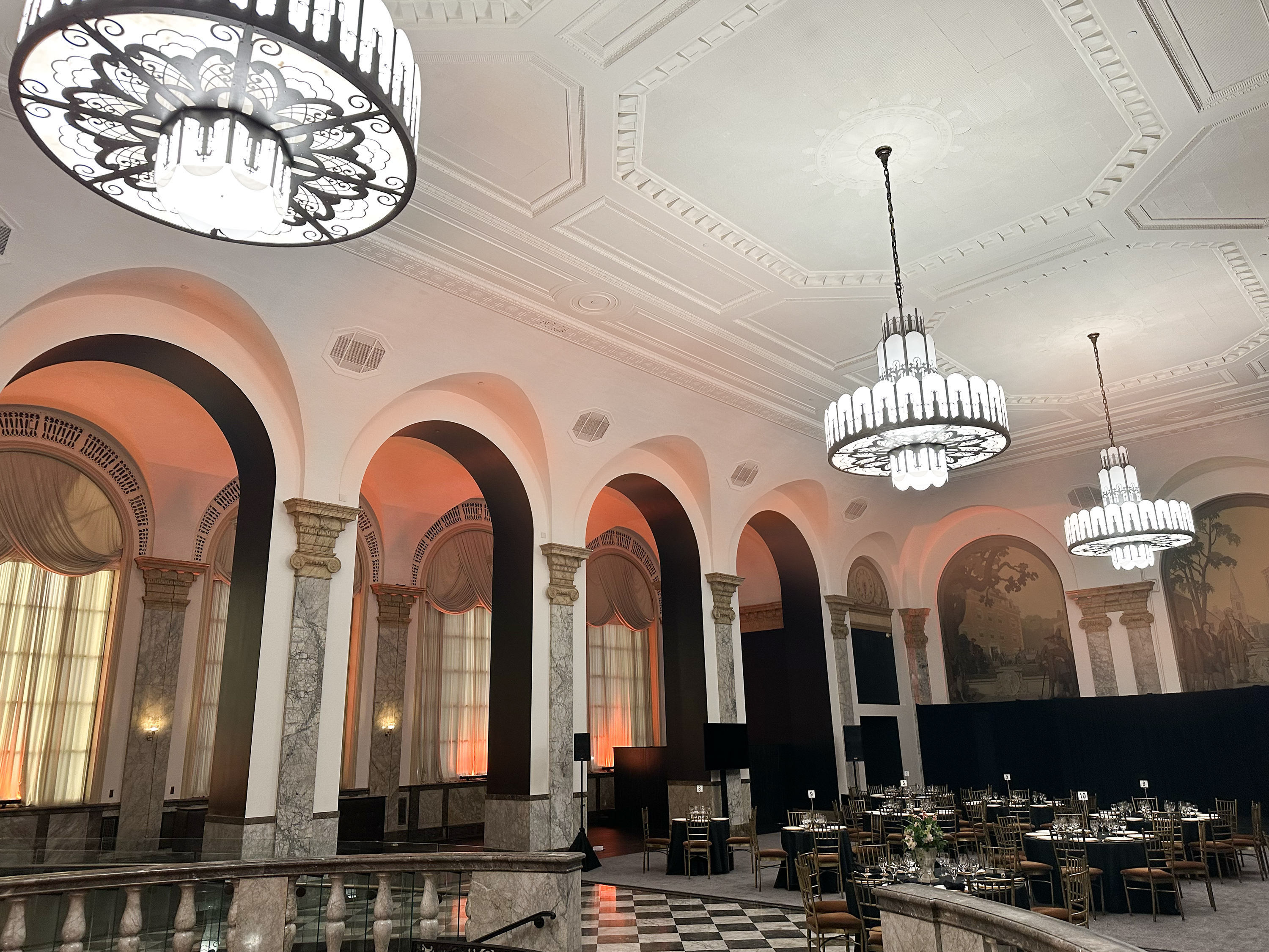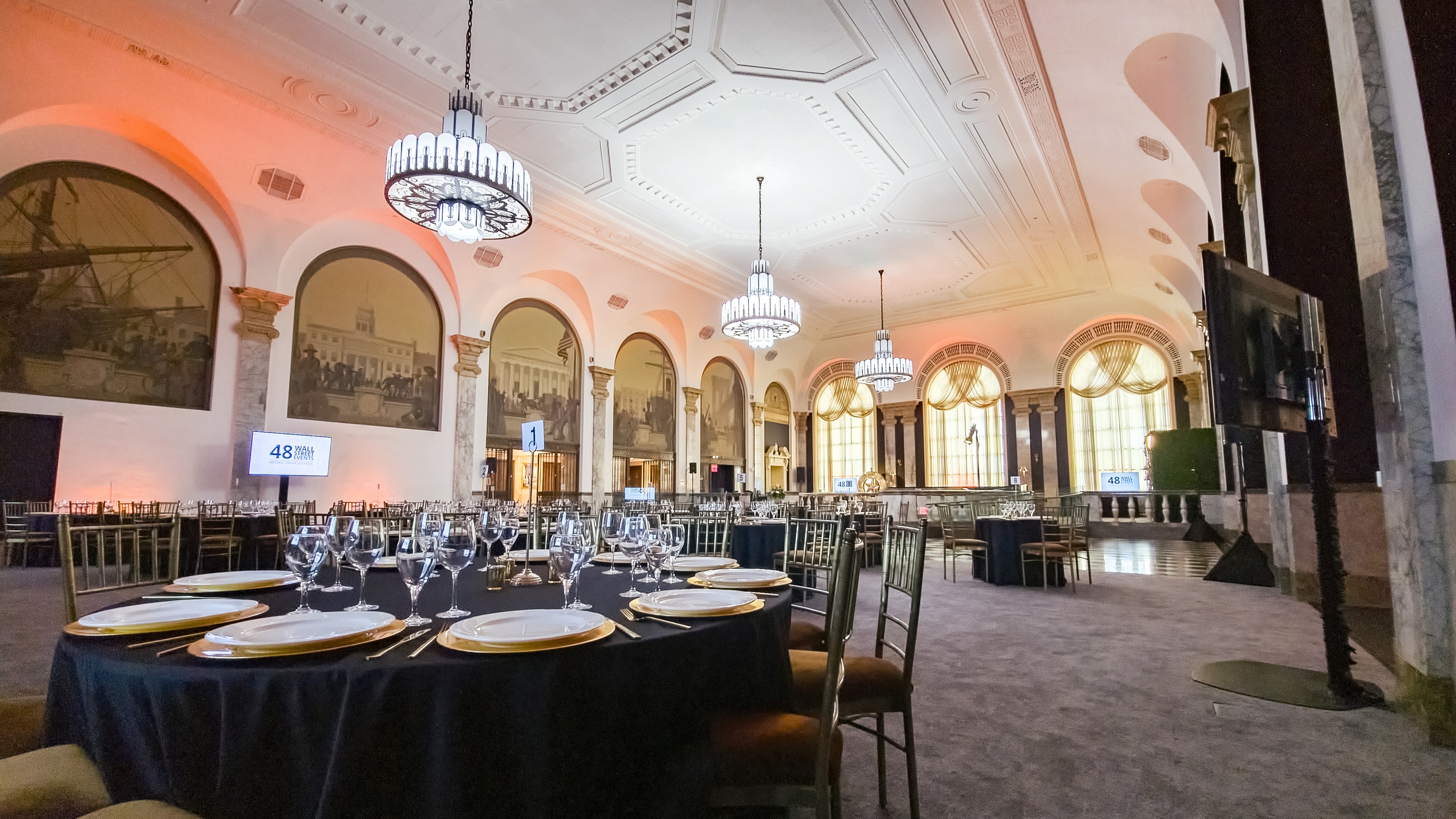 When entering the 48 Wall Street, you are greeted by a grand marble staircase. Let your eyes gravitate upward toward the impeccably crafted ceiling and oversized chandeliers. This is 48 Wall Street’s Grand Mezzanine Banking Hall. This space has retained much of its original 1920’s architectural detail; from the 30-foot ceilings to its beautiful Palladian windows. The Banking Hall can host and accommodate a variety of events, which include seated dinners for 325 guests or a cocktail reception for 500 guests. The space can also be divided to your liking to create a more intimate setting for smaller events and meetings.